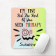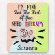 Um humorístico tapete colorido de rato que diz ao mundo como ele realmente é. "Estou bem, mas o resto de vocês precisa de terapia" pode resumir como se sente no final da semana. Mat de rato de trabalho ideal para se presentear ou como presentes para os amigos. Personalize com nomes ou uma mensagem curta.