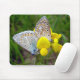 Coágulos de borboletas azuis comuns (Polyommatus icarus). O homem é azul e a fêmea é marrom