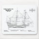 Planos de nave Mayflower. O famoso navio do século XVII que transportou os peregrinos para a América. Enviar plano. Planos de desenho ou esquemas com contorno de design para Mayflower