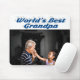 Mousepad com o melhor avô do mundo em texto azul-marinho 3D. Personalize-o com a sua própria fotografia.