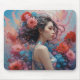 Este trabalho de arte cativante combina surrealismo e realismo, apresentando uma mulher cercada por flores vibrantes e flutuantes em tons de vermelho, rosa e azul. Seu vestuário futurista e reflexivo adicionam energia dinâmica, enquanto pinceladas suaves criam profundidade. Perfeito para amantes da arte, esta peça traz beleza, elegância, e um senso de maravilha para qualquer espaço.