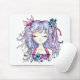 Mousepad Menina roxa bonito do manga da flor do cabelo