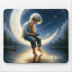 Mousepad Menino pescando a partir de uma lua crescente