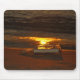 Mensagem em uma garrafa em uma praia do pôr do sol.