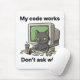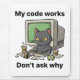 O motivo perfeito para todos os desenvolvedores, programadores e cientistas da computação. Mostra um gato rabugento sentado em frente à tela e apresentando um ditado espirituoso. Uma declaração ideal para programadores humorísticos e relaxados.