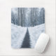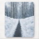 A foggy winter forest path with fresh snow and soft mist creates a tranquil Scandinavian-style landscape. A perfect image to enhance the coziness and comfort of your home, cottage, or interior.