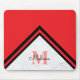 This beautiful mouse pad features an elegant red and black chevron design with name and monogram on a white marble.