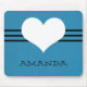 Doce e encantador Mousepad Cardíaco Moderno com fundo azul claro e um coração fofo e borda listrada. Este bonito e giro mouse irá adicionar estilo a qualquer espaço de trabalho. Personalize com o texto de sua escolha. Clique em "Personalizar" para encontrar opções adicionais de personalização.