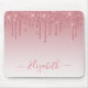 Moderno Elegante Fashion Glitter Rosa Desbotado Rosa Mouse Pad personalizado com seu Nome. Grafia Estilosa. Glitter Escorrendo com brilhos.
