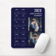 Este simples e moderno mouse azul, marinho e escuro, apresenta um calendário 2020, com espaço para duas de suas próprias fotos e uma ou duas linhas de texto ou nomes.