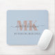 This modern mouse pad features a mocha mousse monogram, name and profession in dark grey over a dusty blue field. Designed for a clean and sophisticated workspace it blends classic minimalism with chic details. A thoughtful gift for remote workers, designers or anyone who wants a stylish desk upgrade.