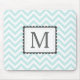 Mousepad Monograma azul e branco da hortelã de Chevron do
