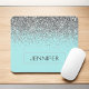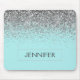 Mouse Glitter Glitter Glitter Faux Silver e Aqua Blue Teal Faux Glitter Sparkle Elegante e moderna Trendy Chic Monogrammed Pad. Este monograma - adicione o seu próprio nome a mousepad personalizado pode ser atualizado com o seu nome.