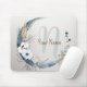 Mousepad Monograma Boho Flor Branco Orquídea Azul Lua