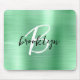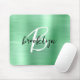 Este elegante mouse personalizado apresenta um monograma e primeiro nome em um roteiro preto e branco moderno em um fundo verde de metal escovado.