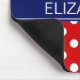 Teste padrão de bolinhas vermelho e branco #2, etiqueta do monograma do nome da fita de azuis marinhos