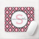 Rosa quente e teste padrão tribal cinzento do ikat do diamante com nome e monograma.