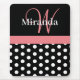 Mousepad Monograma da Bolinhas branca, preto-e-rosa