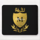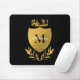 Um elegante emblema real, preto e monograma, com coroa dourada, escudo e folhas. Um belo design que incorpora guião tipografia moderna e escrita. Presente de aniversário ideal, decoração infantil, arte de quarto infantil, decoração doméstica, presente de Natal ou presente para qualquer outra ocasião especial. Personalize o monograma e faça dele seu.