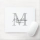 Placa Mouse de Monograma de Cinza Branca com Script Preto Mínimo Moderno