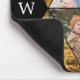 Na moda e mouse único impressos com uma colagem de fotos geométricas com seis de suas fotos em quadros triangulares. Adicione a sua inicial em branco entre duas ranhuras esticadas que correspondam ao padrão impresso de xadrez preto e castanho claro.