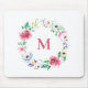 mousepad do tema floral primavera. Apresenta uma camada aquosa de flores azuis, pincéis, rosa e roxas. Personalize adicionando um monograma. Este monograma floral é perfeito como presente personalizado.