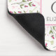 Um mouse pad com seu nome personalizado e um dentro inicial monograma com um quadro branco de casca de ovo com borda rosa. O pano de fundo é um padrão de flores silvestres cor-de-rosa desenhadas à mão, com caules verdes longos e folhas num pano de fundo branco de casca-de-ovo. Círculos cor-de-rosa e galhos também decoram o design. Design floral branco e bonito.