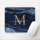 Mousepad Monograma de Geodo de Agate Dourado Azul do Marinh
