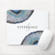 Mousepad Monograma de Geodo de Cinza Azul Elegante