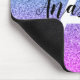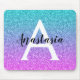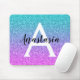 Glitter feminino e glam púrpura, lilac, aqua e tartaruga a sereia brilha o nome do monograma ombre e o mouse pad inicial. Personalize com seu nome personalizado em preto e seu monograma inicial em branco. Você pode alterar a cor do texto, o estilo e o tamanho da fonte usando a opção personalizar.