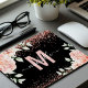 Pia cinzenta-branca-chica e mousepad monograma rosa. Design apresenta flores cor-de-água pastel cor-de-rosa com verde suculento e brilho sutil de rosa. O monograma elegante usa tanto a escrita de caligrafia como a fonte sans, que é a combinação perfeita para este design. O elegante modelo é projetado com fundo preto, permitindo que os florais cor-de-rosa sejam realmente pop, mas pode ser mudado para qualquer cor!