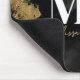 Chic Trendy Black e Dourado Monograma Mousepad. Este elegante painel de mouse é perfeito para uso de escritórios e escolas, acrescentando um toque de sofisticação a qualquer espaço de trabalho. Ideal para empresas como marketing, consultoria ou escritório doméstico personalizado, ele apresenta um fundo preto com cor d'água falsa ou sotaques inspirados em mármore. A tipografia branca em negrito combinada com fontes elegantes de script cria uma tendência, mas um aspecto profissional. Este mouse pad oferece conforto e estilo, fazer-o como um chic, moderno e polido complemento a qualquer mesa! Pad do Rato Monograma do Nome do Script Dourado Preto.
