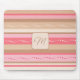Este mouse pad tem um belo mas simplista padrão de listras e pontos em tons de rosa, marrom e creme. A letra do monograma no mouse pad é personalizável e faria um presente personalizado de excelente.