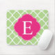 Mousepad Monograma de Quatrefoil Rosa Verde