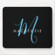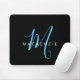 Pad do Mouse Azul de Script Azul do Céu Negro Elegante. Um elegante monograma de script azul-céu combinado com uma fonte branca san-serif limpa faz um olhar contemporâneo.
