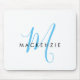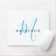 Pad do Mouse Azul de Script Azul do Céu Branco Elegante. Um elegante monograma de script azul-céu combinado com uma fonte limpa de san-serif preta faz um olhar contemporâneo.