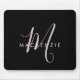 Placa do mouse moderno e elegante, preto, preto, preto, com script de forma rosa e monograma. Um elegante monograma de script Blush Pink combinado com uma fonte branca de san-serif limpa permite uma aparência contemporânea.