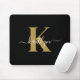 Mousepad Monograma de Script Dourado Preto Elegante
