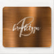 Este elegante mouse personalizado apresenta um monograma e primeiro nome em bege moderno e roteiro branco em um fundo de metal piscado laranja queimado em tendências.