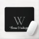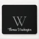 Um monograma profissional moderno, um mousepad preto, com sua Inicial em tipografia de cinza elegante e seu nome em um roteiro branco-na moda.