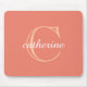 Mousepad Monograma de Script Rosa Pêssego Clássico