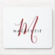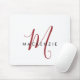 Pad do mouse Elegante Modern White Red Script Monograma. Um monograma elegante de script vermelho combinado com uma fonte limpa de san-serif preta faz uma aparência contemporânea.
