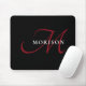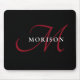 Mousepad Monograma de Script Vermelho Preto Moderno Elegant