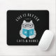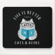 Para o livro e o amante do gato. Gato engraçado vestindo óculos e lendo um pente-mouse. Personalizar com a inclusão de duas iniciais monográficas. Um presente para o livro e o amante de gatos na sua vida.