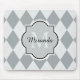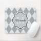 Adicione uma impressão elegante a seu estilo pessoal com este mousepad cinzento macio formal do teste padrão do argyle com um quadro feminino do monograma. Personalize este design cinzento moderno do harlequin adicionando a inicial conhecida e monogrammed de toda a jovem mulher à moda.