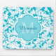 Adicione um toque feminino a seu estilo pessoal com esta turquesa moderna e ao mousepad floral branco com um monograma moldado feminino. Toda a menina feminino amaria ter seu nome e as iniciais personalizadas em flores bonito desta turquesa projetam.