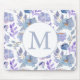 Mousepad Monograma Floral bonito Azul Lilado com Cor de Águ