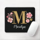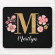 Uma bela e feminina pastilha floral cor-de-rosa, revestida de flores cor-de-rosa e com uma letra magra de um monograma em ouro, M, sobre fundo preto. Personalize o mouse pad adicionando seu nome abaixo do monograma. Faz um presente divertido para um amigo ou para uma dama de damas de honra. Projetado para você pelo Blackberry Boulevard.