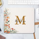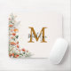 Apresentando nosso Monograma Florestal Mushroom Flowers Floral Botânico Mouse Pad. Apresentando a ilustração aquosa de cogumelo, morango, flores em fundo quase branco. E texto editável que pode ser personalizado para adicionar um toque exclusivo.