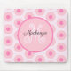 O moderno círculo rosa Dots Geométrico Monograma Pad do Mouse tem um divertido ponto de tendência rosa e design monograma. Excelente para adicionar esse toque especial à sua casa ou escritório. Personalize-o com suas informações.